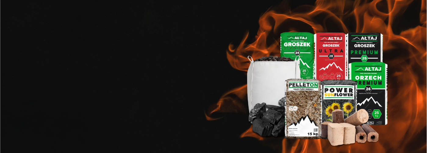 Certified "Pelleton" wood pellets, hard coal, bagged peas and walnut coal, sunflower husk pellets, wood and peat briquettes.