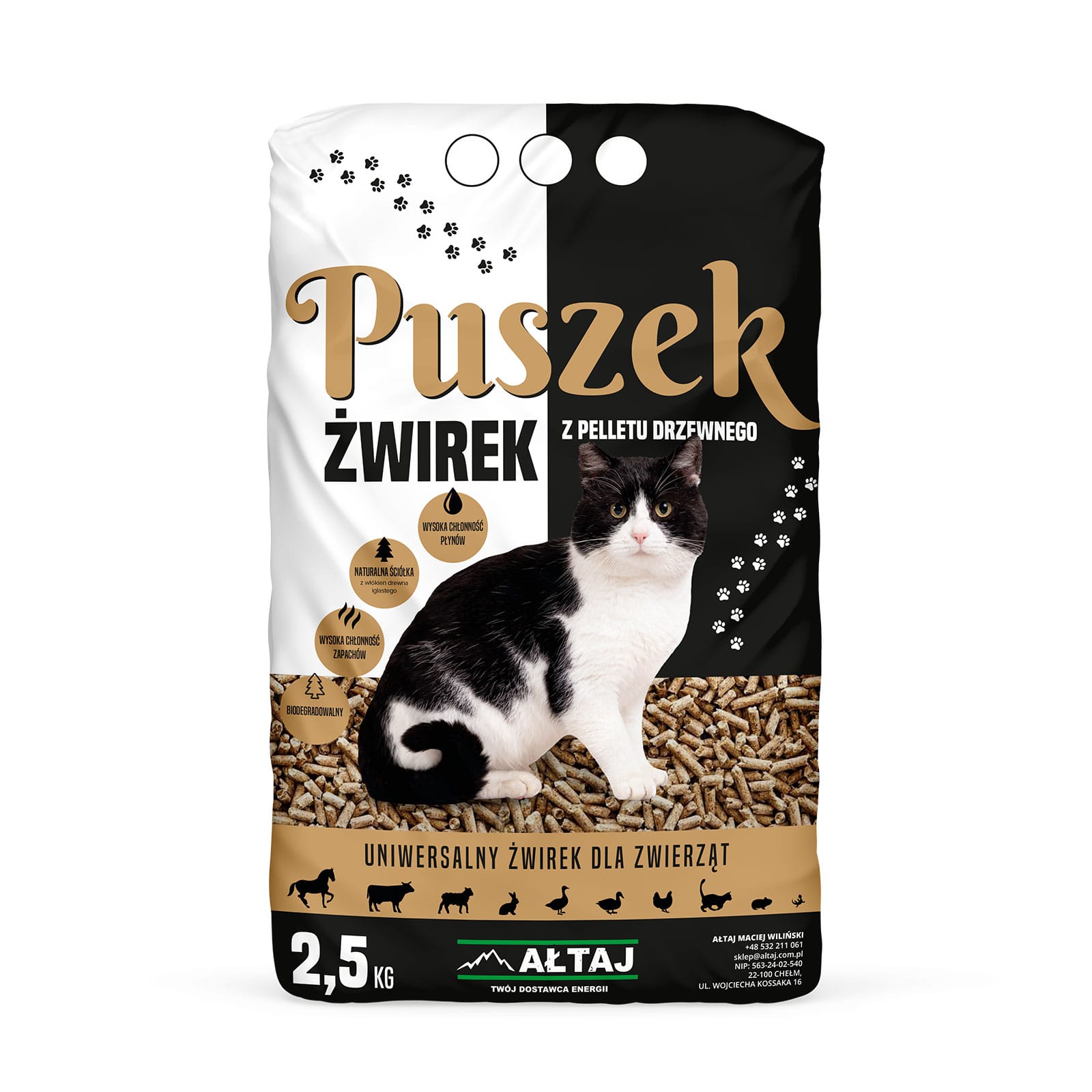 La litière Puszek est une litière naturelle, hygiénique et 100 % biodégradable composée de fibres de bois résineux. Les granulés de 6 mm absorbent parfaitement l'humidité et neutralisent les mauvaises odeurs , tout en diffusant le parfum naturel des conifères. Grâce à leur haute capacité d'absorption, ils constituent la solution idéale pour maintenir un bac à litière propre, garantissant ainsi le confort et la fraîcheur de vos animaux de compagnie. La litière Puszek se caractérise par une faible teneur en poussière, ce qui la rend douce et sans danger pour les pattes sensibles de votre animal . Ce produit est entièrement naturel et ne contient aucun additif artificiel, pour une utilisation en toute sécurité.
